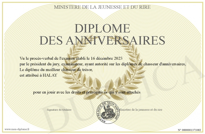 Envoyez par email votre Diplôme des Anniversaires personalisé