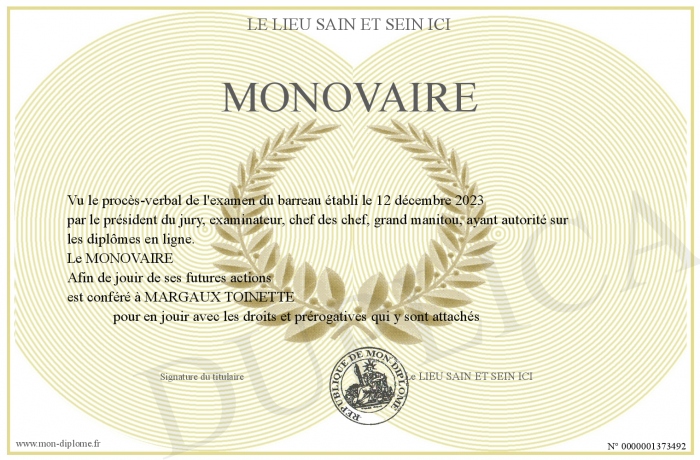 Envoyez par email votre MONOVAIRE personalisé