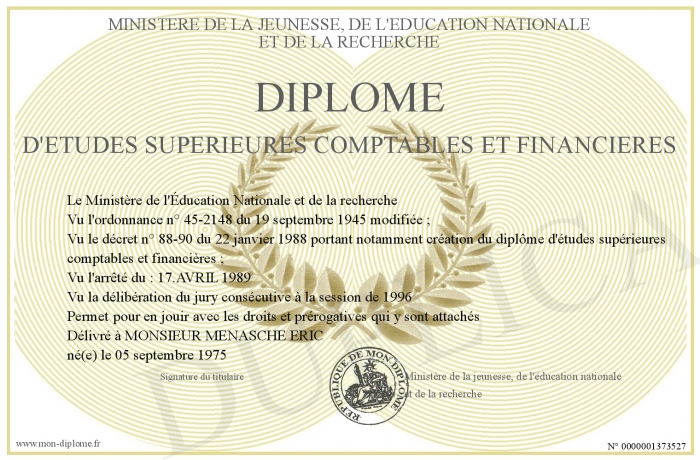 Envoyez par email votre Diplôme d'études supérieures comptables et financières personalisé