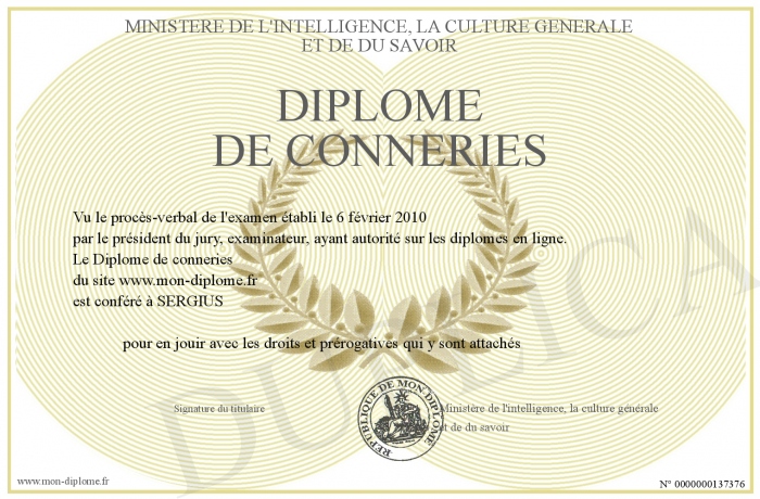 Envoyez par email votre Diplôme de conneries personalisé