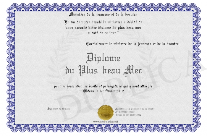 Envoyez par email votre Diplome du Plus beau Mec personalisé