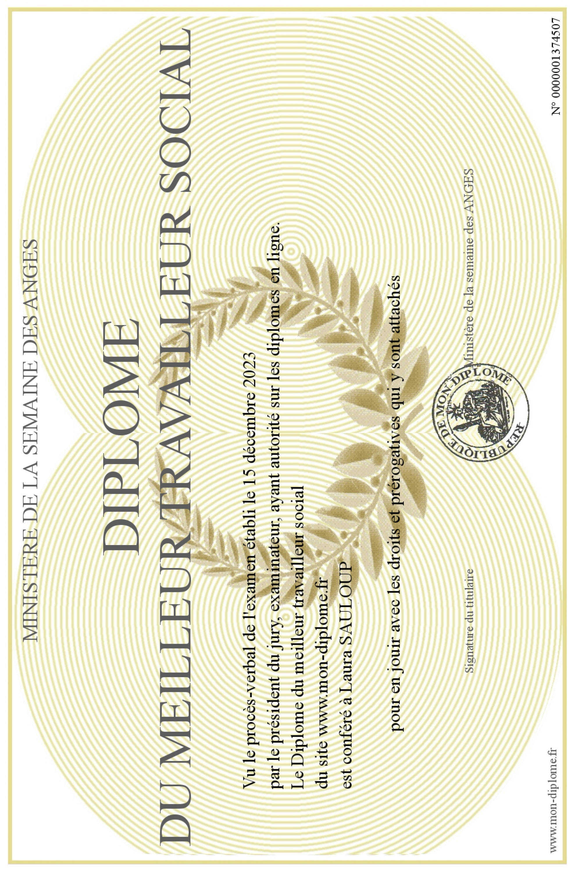 Envoyez par email votre Diplôme du meilleur travailleur social personalisé