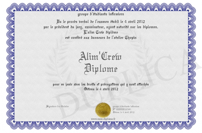 Envoyez par email votre Alim'Crew Diplôme personalisé