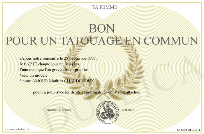 Envoyez par email votre BON POUR UN TATOUAGE EN COMMUN personalisé