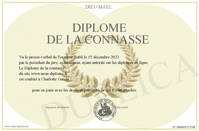 Envoyez par email votre Diplôme de la connasse personalisé