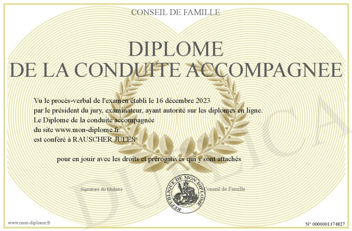 Envoyez par email votre Diplôme de la conduite accompagnée personalisé