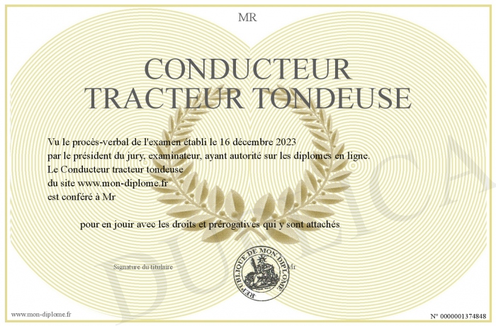 Envoyez par email votre Conducteur tracteur tondeuse personalisé