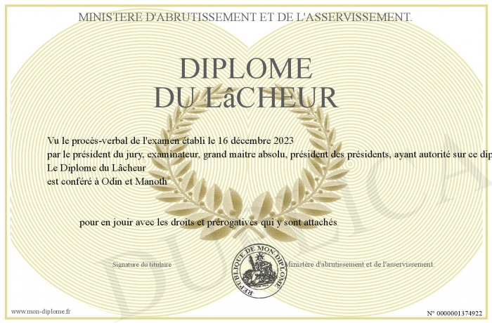 Envoyez par email votre Diplôme du Lâcheur personalisé