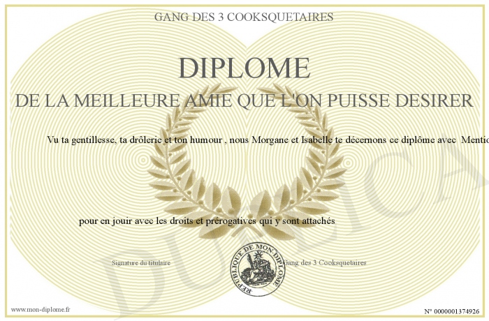 Envoyez par email votre Diplôme de la meilleure amie que l'on puisse désirer personalisé