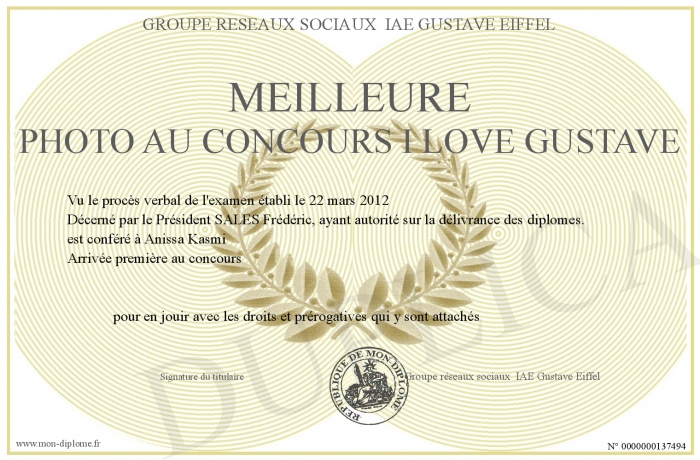 Envoyez par email votre meilleure photo au concours I LOVE GUSTAVE personalisé