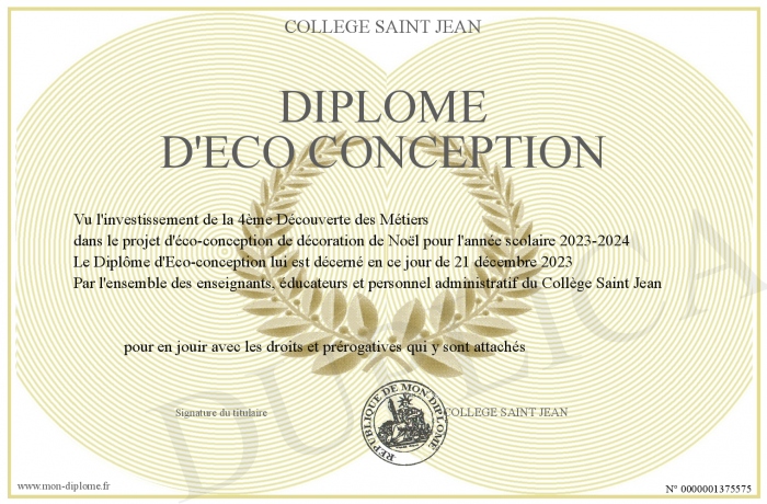 Envoyez par email votre DIPLOME D'ECO CONCEPTION personalisé