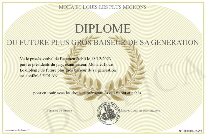 Envoyez par email votre Diplôme du future plus gros baiseur de sa génération personalisé