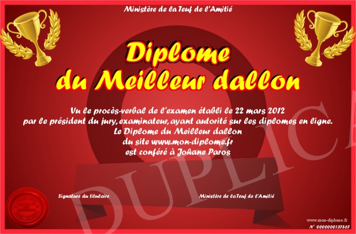 Envoyez par email votre Diplôme du Meilleur dallon personalisé