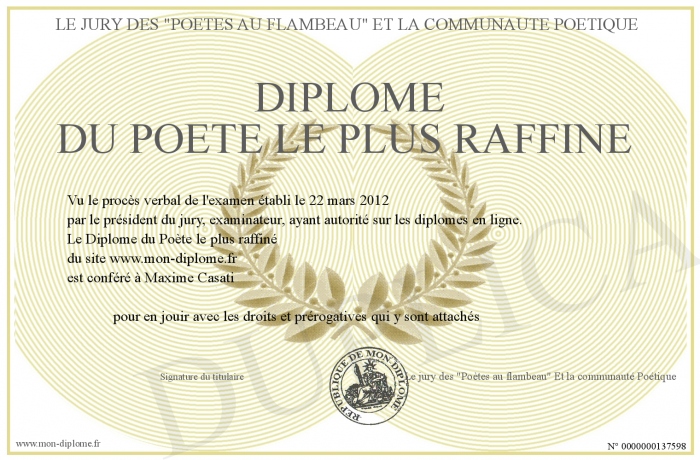 Envoyez par email votre Diplôme du Poète le plus raffiné personalisé