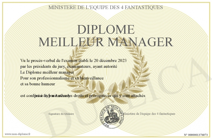 Envoyez par email votre Diplôme meilleur manager personalisé