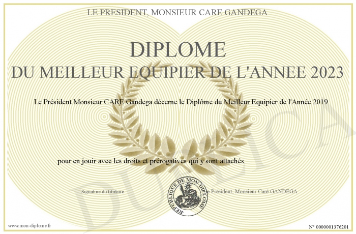 Envoyez par email votre Diplôme du meilleur équipier de l'année 2023 personalisé