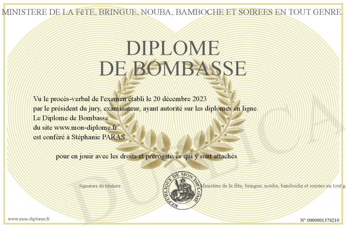 Envoyez par email votre Diplôme de Bombasse personalisé