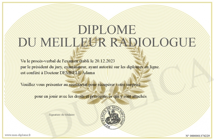 Envoyez par email votre Diplôme du meilleur radiologue personalisé