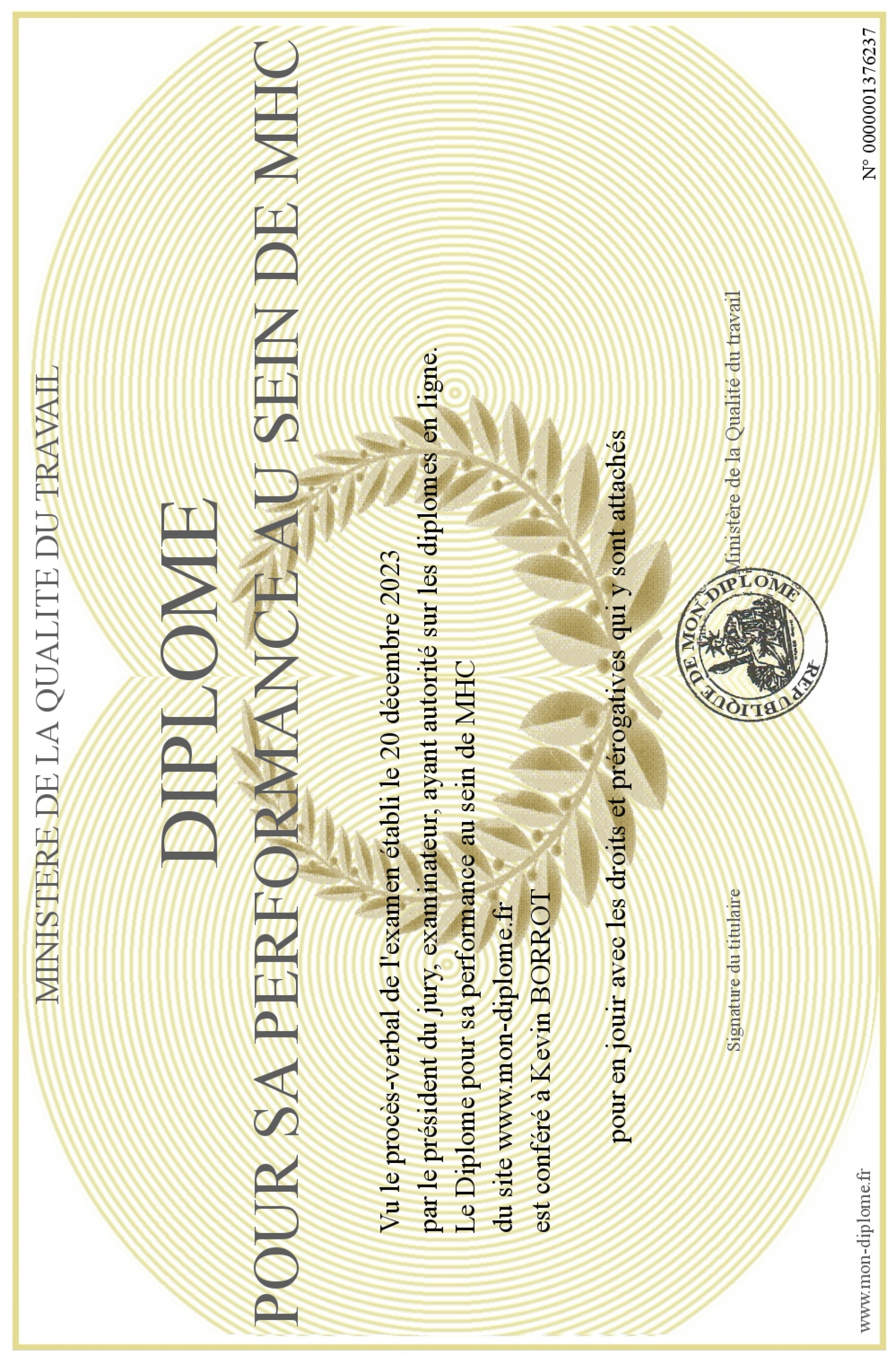 Envoyez par email votre Diplôme pour sa performance au sein de MHC personalisé