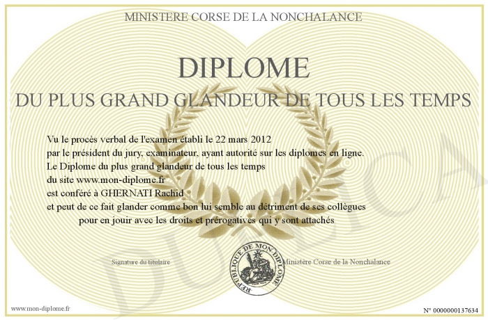 Envoyez par email votre Diplôme du plus grand glandeur de tous les temps personalisé
