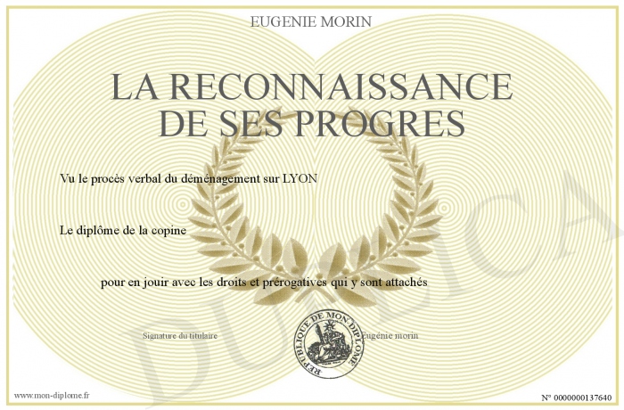 Envoyez par email votre la reconnaissance de ses progrès personalisé
