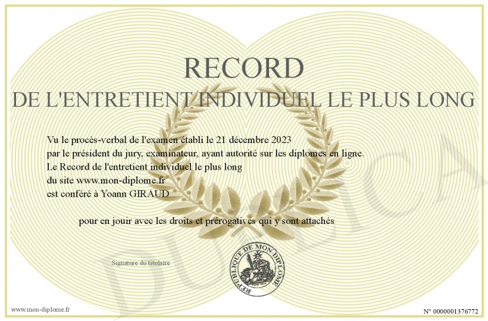 Envoyez par email votre Record de l'entretient individuel le plus long personalisé