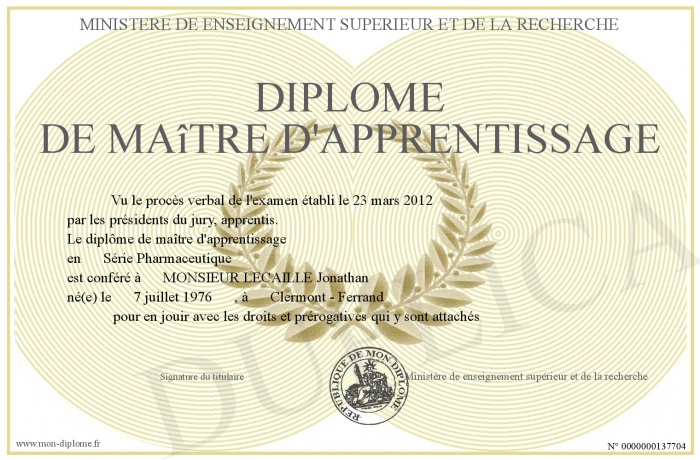 Envoyez par email votre diplôme de maître d'apprentissage personalisé