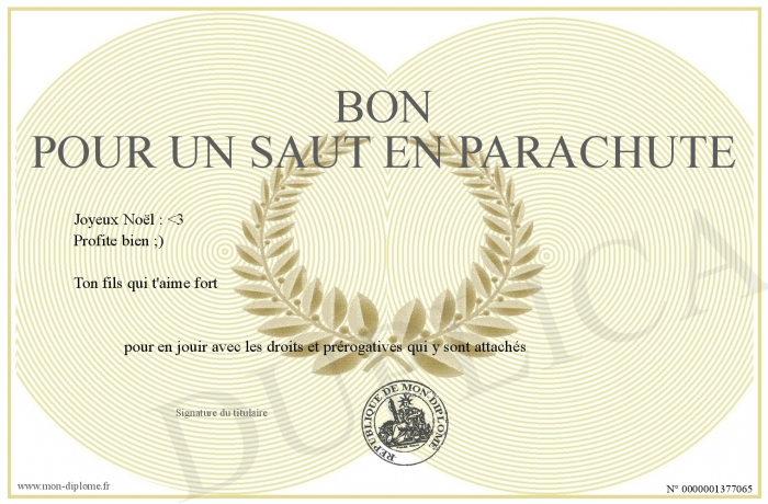 Envoyez par email votre Bon pour un saut en parachute personalisé