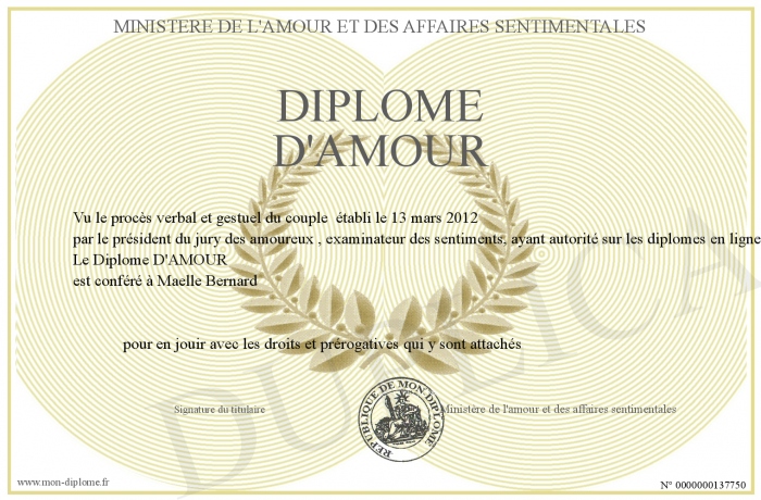 Envoyez par email votre Diplome D'AMOUR personalisé