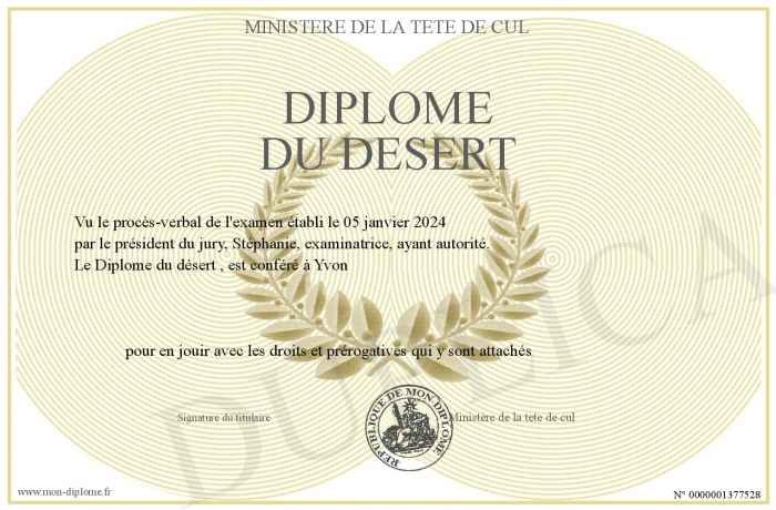 Envoyez par email votre Diplôme du désert personalisé