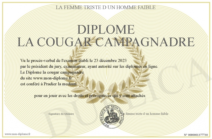 Envoyez par email votre Diplôme la cougar campagnadre personalisé