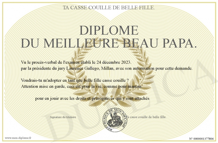 Envoyez par email votre Diplôme du meilleure beau papa. personalisé
