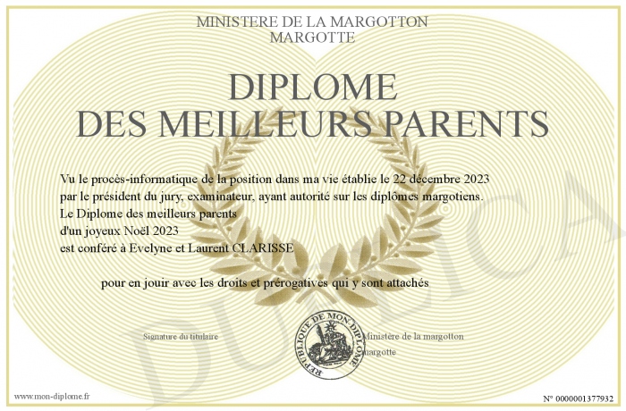 Envoyez par email votre Diplôme des meilleurs parents personalisé