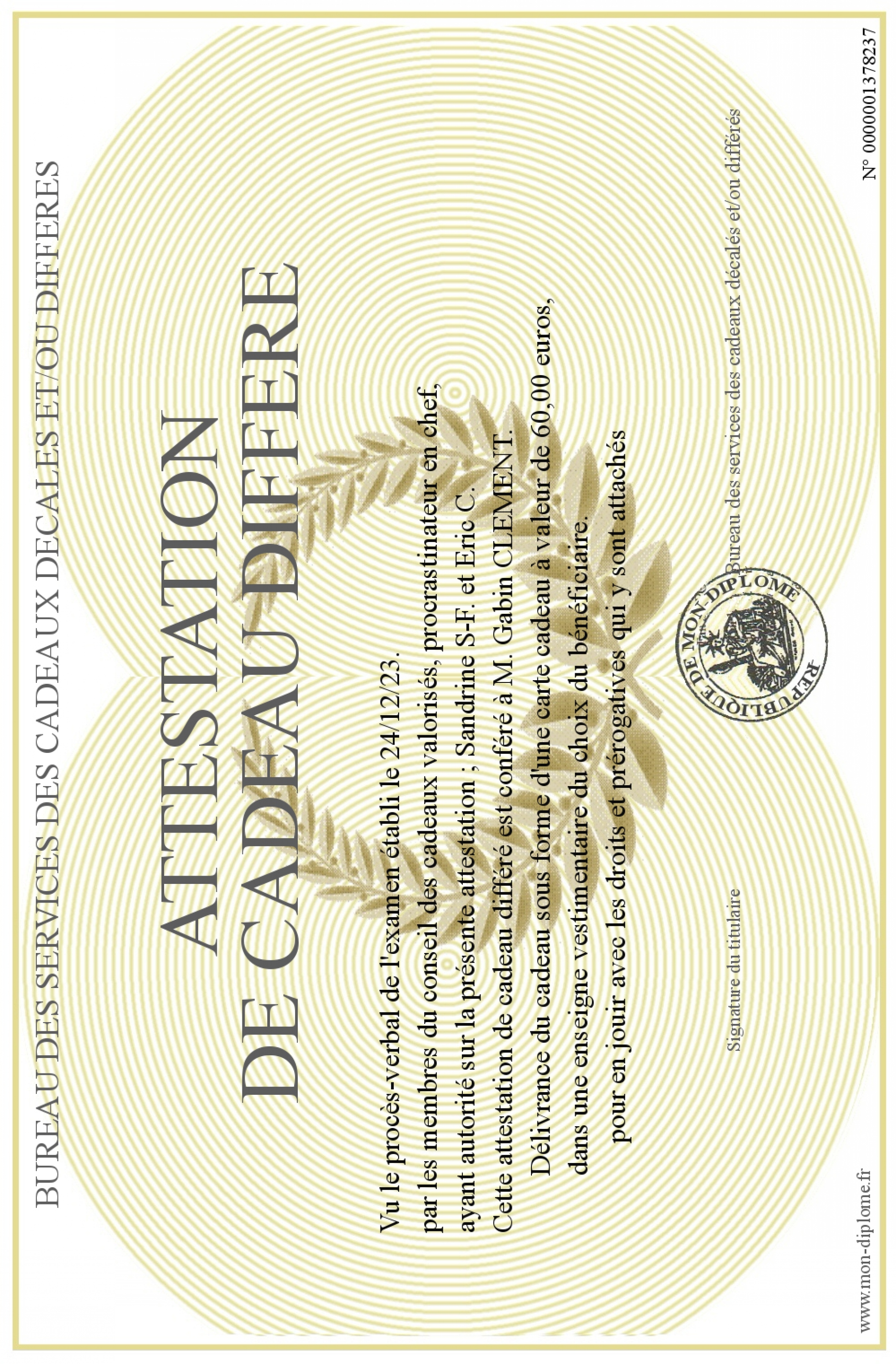 Envoyez par email votre Attestation de cadeau différé personalisé