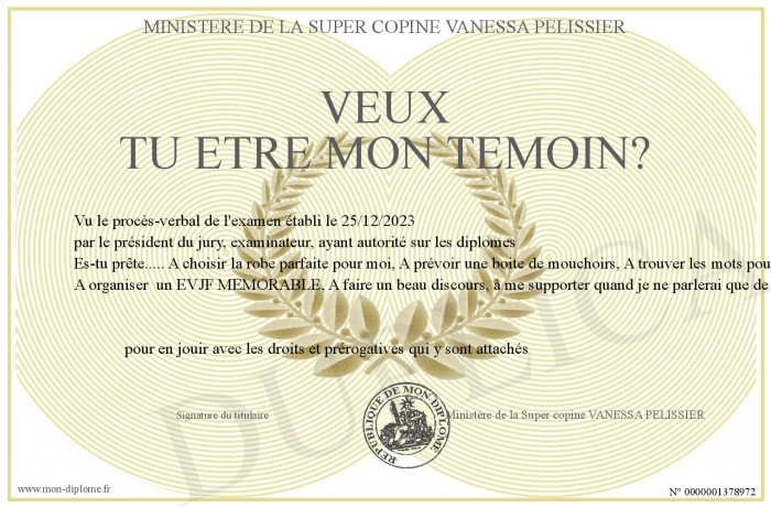 Envoyez par email votre VEUX TU ETRE MON TEMOIN? personalisé
