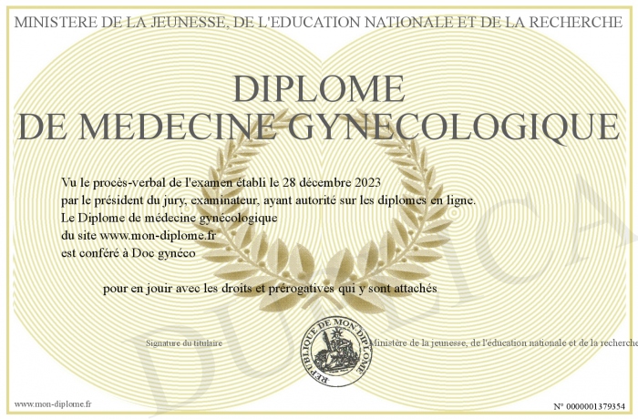 Envoyez par email votre Diplôme de médecine gynécologique personalisé