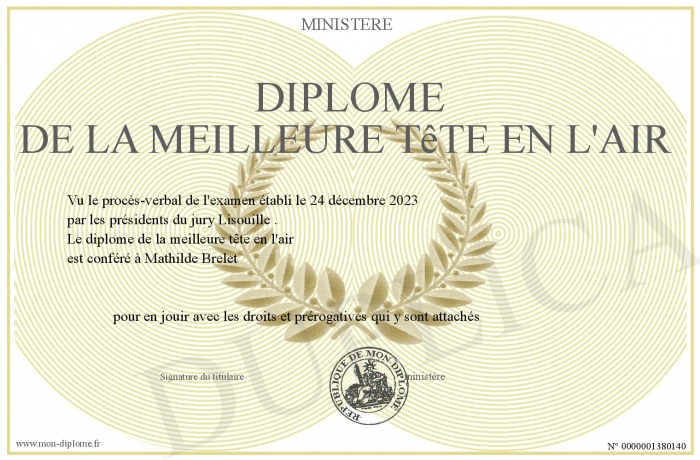 Envoyez par email votre diplôme de la meilleure tête en l'air personalisé