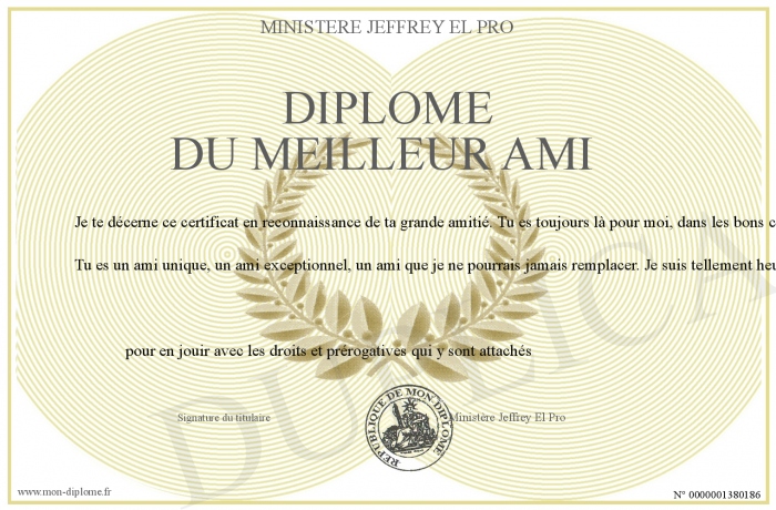 Envoyez par email votre Diplôme du Meilleur Ami personalisé