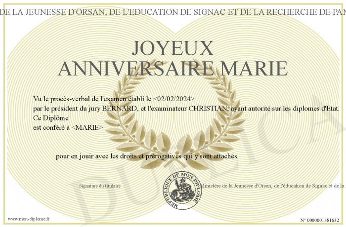 Envoyez par email votre JOYEUX ANNIVERSAIRE MARIE personalisé