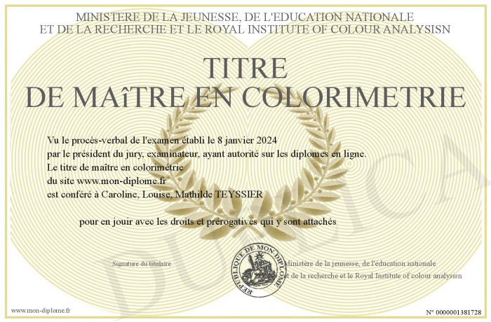 Envoyez par email votre titre de maître en colorimétrie personalisé