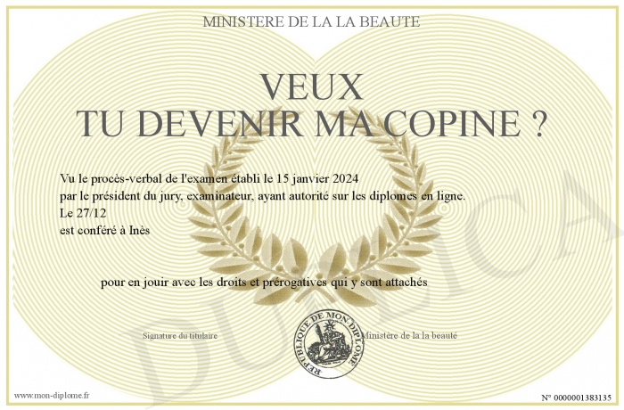 Envoyez par email votre Veux tu devenir ma copine ? personalisé