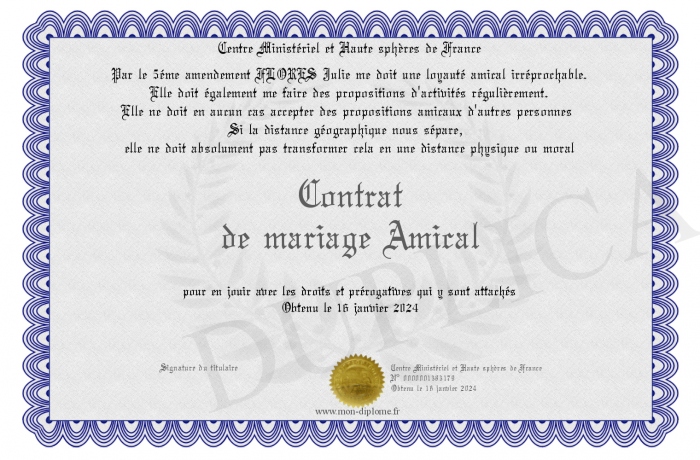 Envoyez par email votre Contrat de mariage Amical personalisé