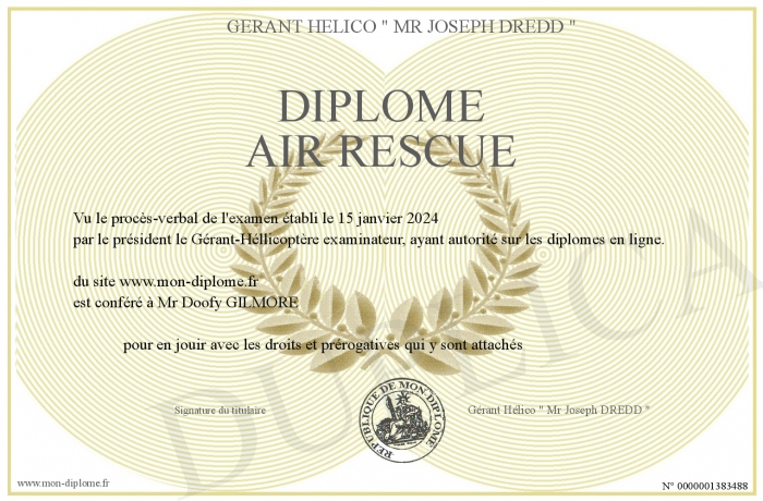 Envoyez par email votre diplôme air rescue personalisé