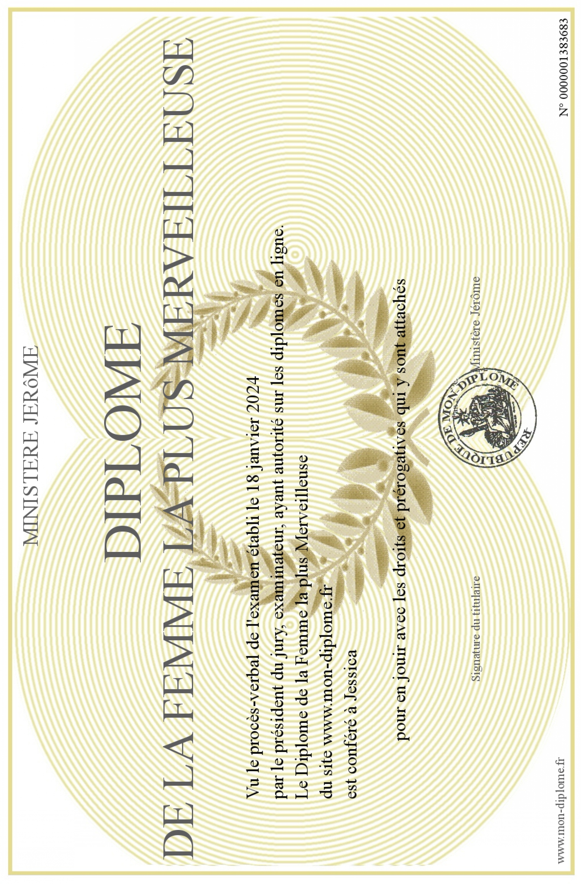 Envoyez par email votre Diplôme de la Femme la plus Merveilleuse personalisé