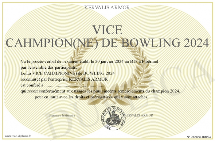 Envoyez par email votre VICE CAHMPION(NE) de BOWLING 2024 personalisé