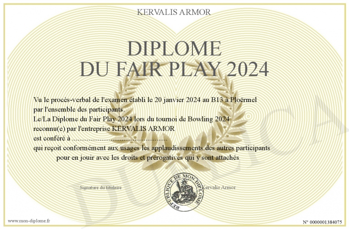 Envoyez par email votre Diplôme du Fair Play 2024 personalisé