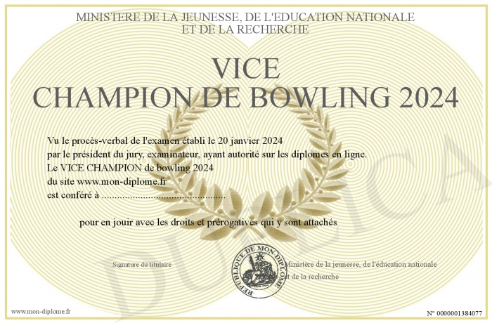 Envoyez par email votre VICE CHAMPION de bowling 2024 personalisé