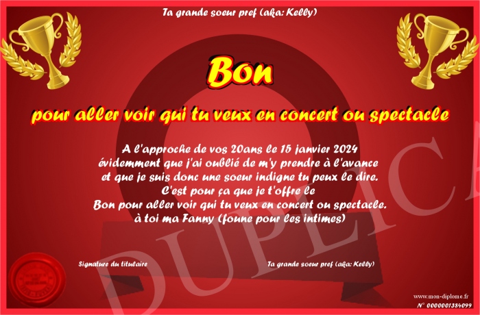 Envoyez par email votre Bon pour aller voir qui tu veux en concert ou spectacle personalisé