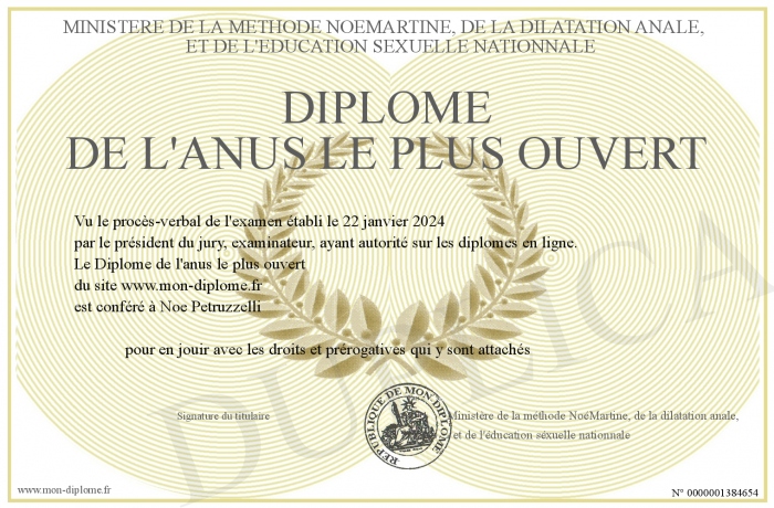 Envoyez par email votre Diplôme de l'anus le plus ouvert personalisé