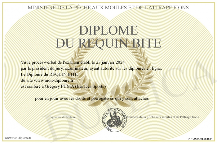 Envoyez par email votre Diplôme du REQUIN BITE personalisé